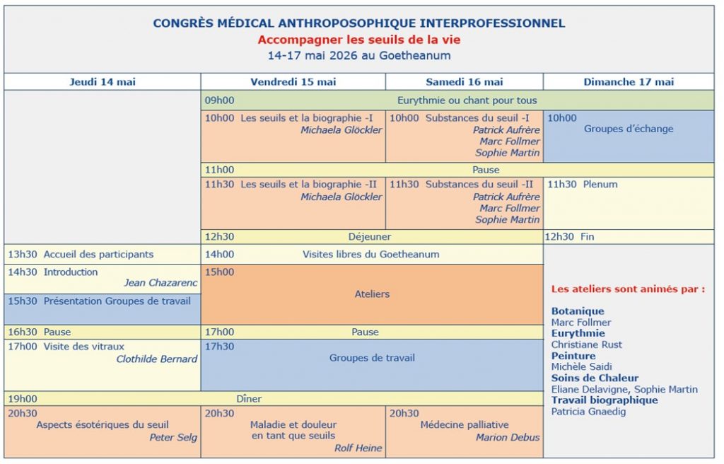 Ce séminaire s’adresse aux professions médicales, pharmaceutiques et paramédicales, ainsi qu’aux professions thérapeutiques d’orientation anthroposophique.